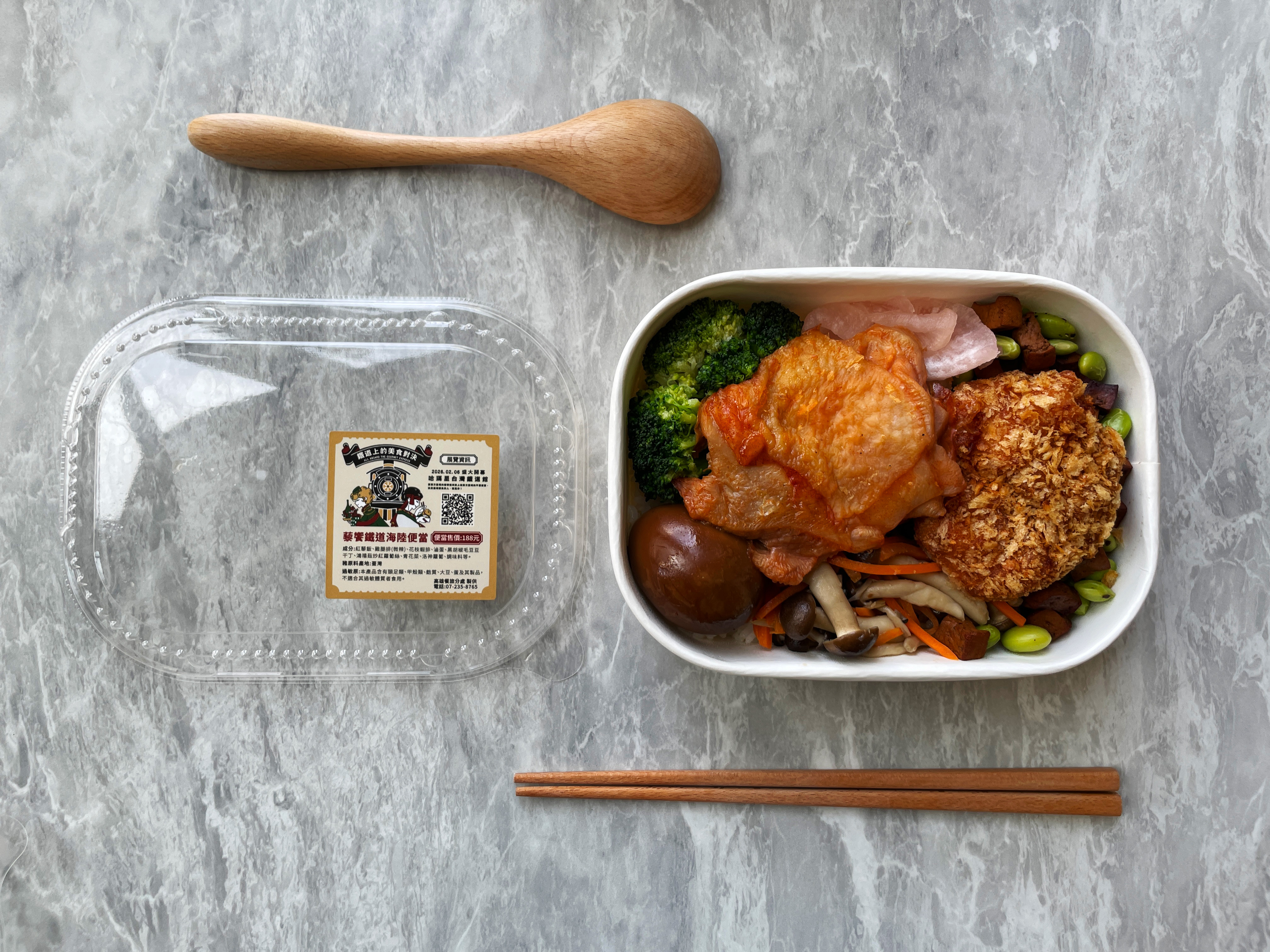 「藜饗鐵道海陸便當」每份售價新臺幣188元,將於115年2月6日至2月13日期間限定販售,數量有限,售完為止。期望透過展覽與聯名便當的結合,讓民眾在走進鐵道歷史的同時,也能以味覺感受鐵道文化的日常風景。